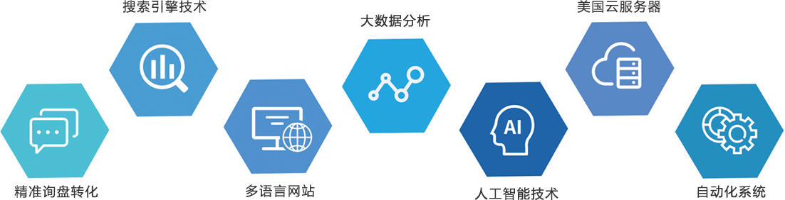 结合大数据技术、人工智能、搜索算法和社交营销的外贸整合营销一站式解决方案,通过四大系统助力企业解决国际贸易营销难题。