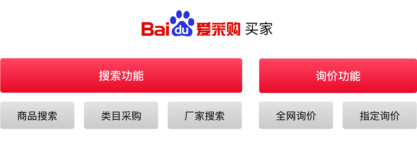 百度爱采购一直以来十分关注采购买家的用户体验,在买家侧功能上运用搜索长期沉淀的优势满足买家对于采购的信息检索需求。买家可在百度爱采购平台内使用如下功能达成交易: